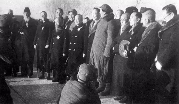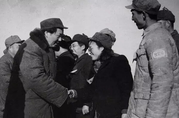 毛主席高興地與他們一一握手,說:“老朋友們好!我們終于在北平會面了!”