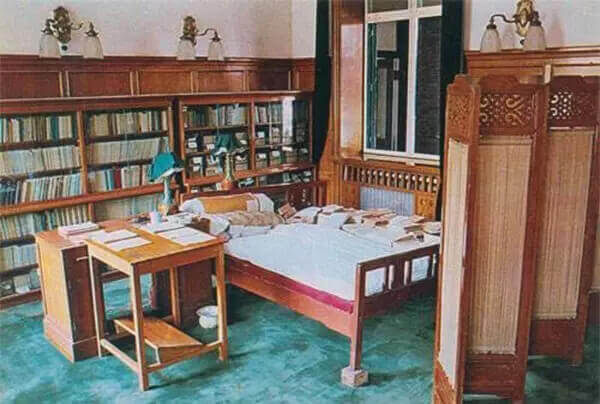 毛主席在中南海的住處是菊香書屋,這是一座南北向的長方形四合院,毛主席住在北房靠東頭的一間,屋里擺放著一張大木板床、一套沙發、一張寫字臺,再有就是無處不在的書籍,毛主席帶領著中共中央在這里夜以繼日地工作。