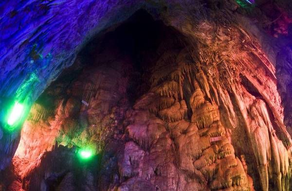 位于半山腰的紅瑪瑙溶洞,是我國首次發現的紅瑪瑙質構成的自然景觀,形成距今已有16億多年的歷史。通高90米、寬50米,共設六個景廳,有仙女下凡、八仙賀壽、塔林夜月等40多個景點。進得洞來,拾級攀援而上,既能觀賞驚險奇絕的景色,又可當作登狼牙山的必經通道。